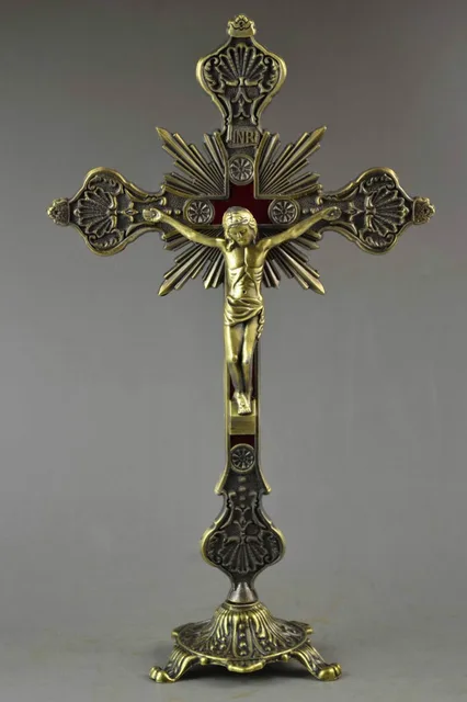Rumit Buatan Cina Old Copper Statue Patung Yesus Di Salib Di Patung